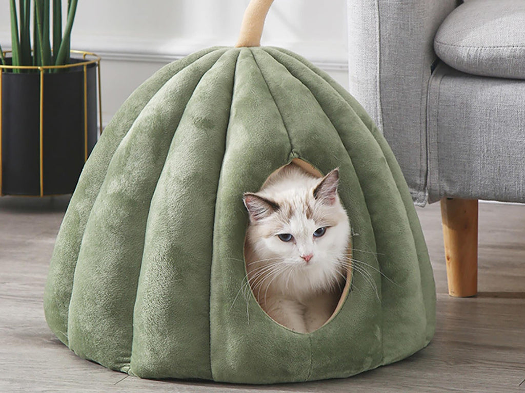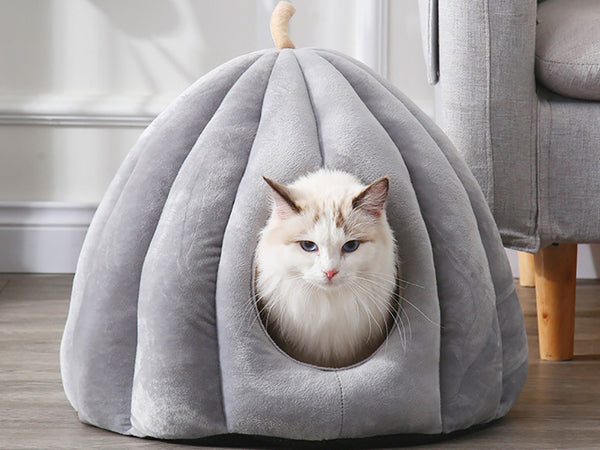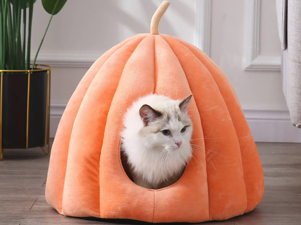 Our fun, cosy and warm pumpkin cat house is the perfect hideaway for your pet to snuggle and burrow into. It's the ultimate luxury cat bed your pet will love when they just want a bit of peace and quiet. With luxuriously soft fabric and a thick padded and removable interior cushion, your pet will feel secure, comfortable and relaxed in this luxury cat cave. The thick padded walls provide warmth as well as sound insulation to help calm and reduce your pet's stress levels and promote better sleep quality.
